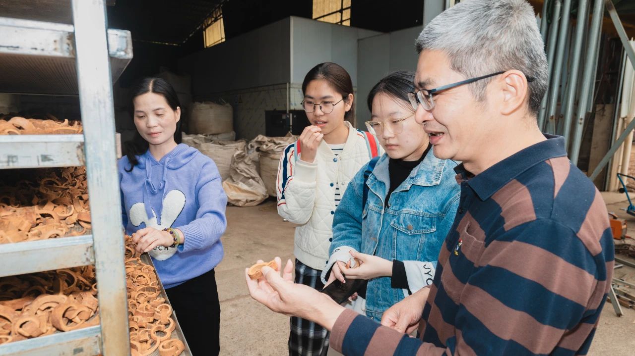 许主任和相关负责人带队员们参观了合作社和肉桂销售企业的工作车间。在这里,新鲜的肉桂经过一道道工序,被加工成桂皮、桂枝等初级产品。机器的轰鸣声中,大家见证了肉桂从原材料到商品的初步转变,也感受到了产业发展的活力。