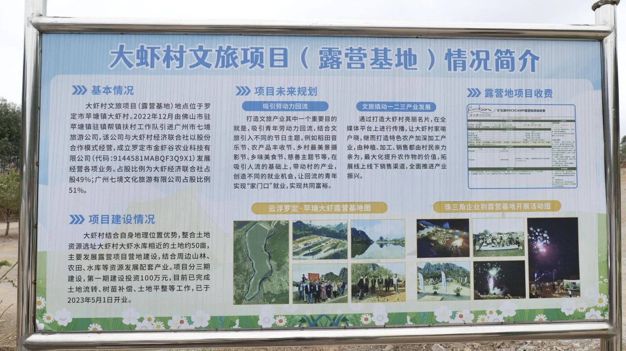 走进罗定苹塘镇大虾村,仿佛踏入了一幅徐徐展开的乡村振兴新画卷。这里以 “党支部 + 企业 + 合作社” 的创新模式打造的露营基地,充分利用了当地得天独厚的自然景观,让游客在享受自然的同时,也为村子带来了实实在在的经济效益。流转的土地不仅是资源的合理利用,更是产业多元化发展的有力尝试,为乡村经济注入了新的活力。