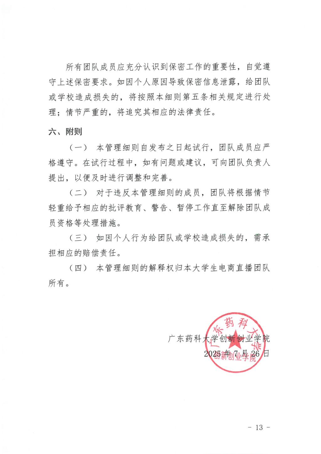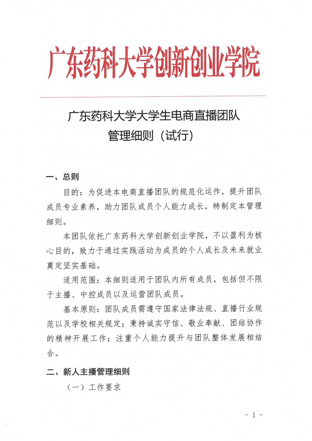 广东药科大学大学生电商直播团队管理细则(试行)